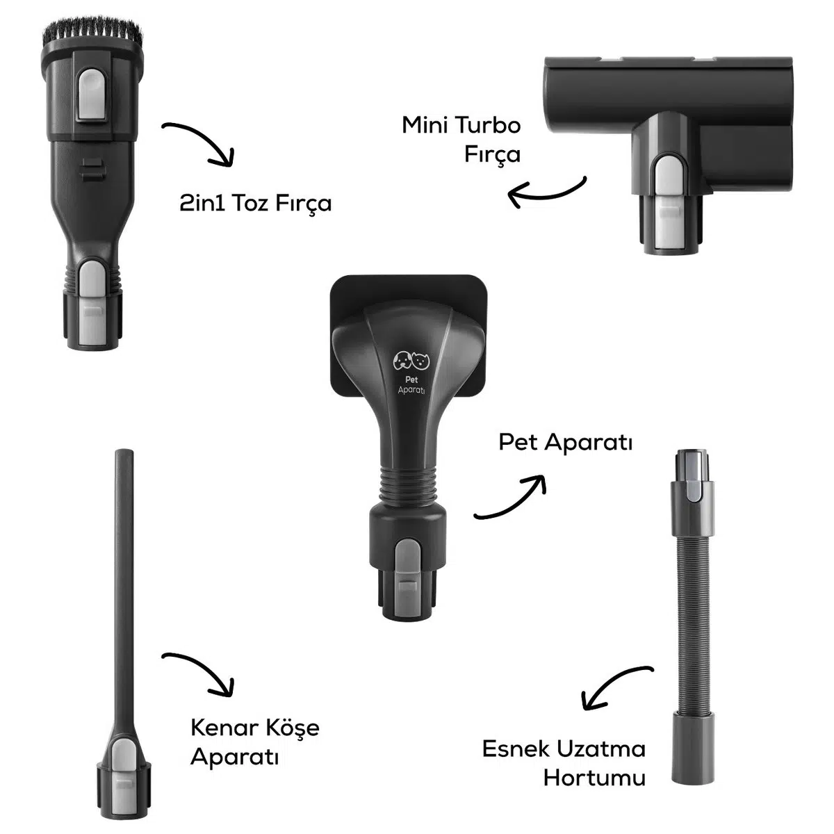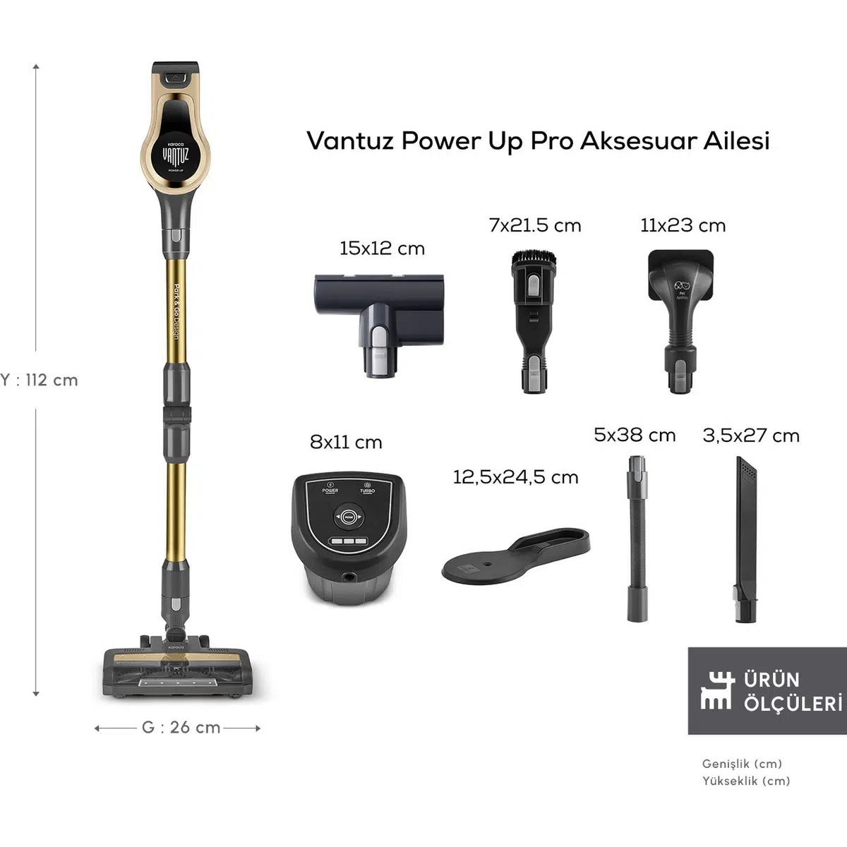 Artık Park Et & Git Özelliği ile çok daha kolay bir kullanım sunuyor. Park Et & Git Özelliği sayesinde; süpürürken istediğiniz zaman süpürgenizi dik konumda bırakabilirsiniz. Bu sayede temizlik yaparken bir şey almak için durmanız gerektiğinde ya da başka bir iş ile uğraşmanız gerektiğinde süpürgenizi güvenle ve hızlı bir şekilde park edebilirsiniz. Powermax Motor Vantuz Power Up Pro, geliştirilmiş Powermax motor teknolojisi sayesinde tüm zeminlerde yüksek çekim gücü ile kusursuz temizlik sağlar. Airmax Cyclone En güçlü torbasız süpürge teknolojisi Airmax Cyclone, hazne içerisindeki toz partiküllerinin ayrışmasını sağlar ve filtrelerin tıkanmasını önler. Böylece Vantuz Power Up Pro, çok daha uzun süre yüksek performansla çalışır. Üç Aşamalı Filtre 3 aşamalı HEPA, metal ve sünger katmanlı filtre sistemi sayesinde partiküllerin %99’unu hapsederek derinlemesine temizlik yapar. Led Işıklı Turbo Fırça 25 W motor gücünde LED ışıklı turbo fırçası, tüm zeminlerde en ufak tozları bile göstererek derinlemesine temizlik sağlar. Ouick&Click Toz Haznesi 0,6 litrelik kolay çıkarılıp takılabilen toz haznesi tek tuşla etrafa toz dağılmadan daha hijyenik bir şekilde boşaltılabilir. İki Farklı Güç Modu Power ve Turbo olarak iki farklı moda sahip Vantuz Power Up Pro, zemin ve kir tipine göre modlar arasında geçiş yaparak daha uzun çalışma süresi sunar. Farklı zeminlerde aktif temizlik sağlar. Tak-Çıkar Batarya Çıkarılabilir batarya teknolojisi sayesinde, Vantuz Power Up Pro süpürgeniz istenilen yerde veya askısında kolayca şarj edilebilir. Üstelik 2000 mAh batarya ile Power moduyla el tipi süpürge formunda 60 dakika, standart süpürge formundayken 50 dakika kesintisiz temizlik imkânı sunar. Ergonomik Tasarım Ergonomik tasarımı ve kolay manevra kabiliyeti sayesinde ulaşılması güç yerlere bile zorlanmadan ulaşır. Katlanabilir Boru Özelliği Katlanabilir borusu sayesinde yatak ve koltuk altı gibi ulaşılması güç yerlere bile zorlanmadan ulaşır. Kenar-Köşe Aparatı Kenar-köşe aparatı ile duvar diplerinde ve ulaşılması zor köşelerde biriken tozları rahatça temizleyebilirsiniz. 2 in 1 Toz Fırçası Vantuz Power Up Pro ‘nun 2 in 1 Fırçası ile koltuk, perde gibi yüzeylerin temizliğini kolayca yapabilirsiniz. Mini Turbo Fırça Koltuklarınızın üzerinde biriken tozları ve patili dostlarımızın tüylerini pratik bir şekilde temizleyebilirsiniz. Esnek Uzatma Hortumu 2’ si bir arada toz fırçası ve kenar köşe aparatıyla uyumlu esnek uzatma hortumu, evinizdeki veya aracınızdaki dar alanların temizliğini kolay hale getirir. Pet Aparatı Pet aparatı, evcil dostunuzun tüylerini kolayca taramak için özel olarak tasarlanmıştır. Tarama ve süpürmeyi aynı anda yapan pet aparatıyla evcil dostunuzun bakımını keyifli hale getirin.